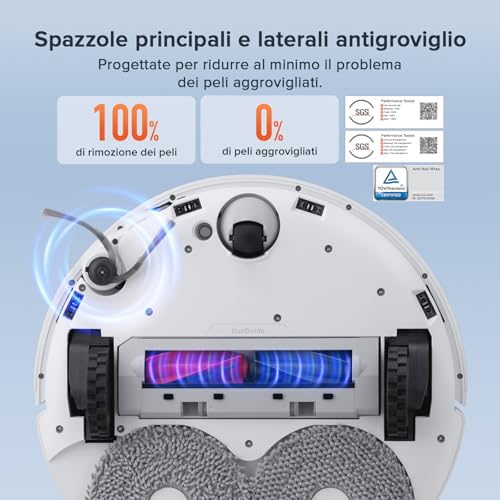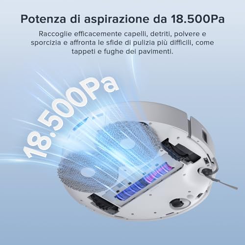 Il sistema di lavaggio è altrettanto avanzato. I due moci rotanti non solo strofinano il pavimento, ma si sollevano automaticamente fino a 10 mm quando rilevano un tappeto, evitando di bagnarlo. Questa funzione è essenziale per chi ha una casa con diverse tipologie di pavimentazione.