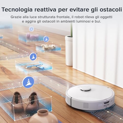 Grazie alla tecnologia Reactive AI, che combina una telecamera RGB e luce strutturata, il robot è in grado di riconoscere ed evitare 62 tipi di ostacoli, come scarpe, cavi o giocattoli. Nei nostri test, il Qrevo Master ha dimostrato un'ottima capacità di aggirare gli oggetti lasciati sul pavimento, anche se, come per molti robot, i cavi sottili possono ancora rappresentare una sfida. È presente anche una funzione specifica che, riconoscendo gli animali domestici, arresta le spazzole per non spaventarli.