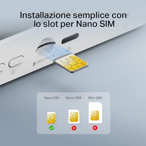 Le due antenne LTE esterne sono rimovibili, il che permette, per gli utenti più esigenti, di sostituirle con modelli più potenti per migliorare ulteriormente la ricezione del segnale 4G. L'installazione è plug & play: basta inserire una Nano SIM (senza PIN) e il gioco è fatto, senza bisogno di complicate configurazioni.