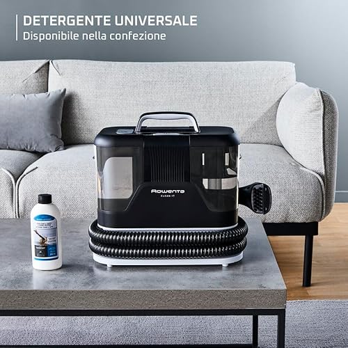 Chi ha detto che per una pulizia profonda dei tessuti serva un apparecchio ingombrante e complicato? Il Rowenta Clean It IN5010 arriva per sfatare questo mito. Si tratta di un lavatappeti e lava tappezzeria portatile, pensato per essere l'alleato numero uno contro le macchie impreviste, che tu abbia bambini, animali domestici o sia semplicemente un po' maldestro. La sua missione è chiara: pulire in modo rapido ed efficiente divani, tappeti, materassi, moquette e persino gli interni dell'auto.