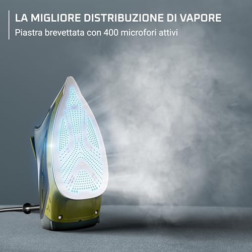 Il cuore pulsante di questo ferro da stiro è senza dubbio la sua potenza di 2700 Watt, che garantisce un riscaldamento rapidissimo. In pochi istanti, il ferro è pronto all'uso, un vantaggio enorme per chi ha sempre i minuti contati. Ma la vera magia avviene con il vapore. L'erogazione continua di 45 g/min è già di per sé efficace sulla maggior parte dei tessuti, ma è il colpo di vapore da 220 g/min a fare la vera differenza sulle pieghe più difficili e sui tessuti spessi come il jeans o il lino.