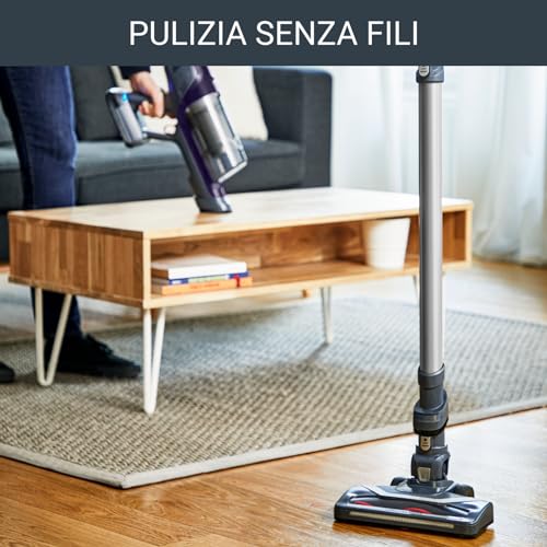 La sua struttura snella e la buona ergonomia dell'impugnatura lo rendono facile da manovrare attorno a mobili e ostacoli. Un dettaglio molto apprezzato è la posizione "Stop&Go": se hai bisogno di una pausa o di utilizzare l'aspirabriciole, il tubo e la spazzola restano in piedi da soli, senza doverli appoggiare a terra o a una parete. Questo, unito alla base di ricarica a muro inclusa, contribuisce a un'esperienza d'uso davvero comoda e a una gestione ordinata dello spazio.