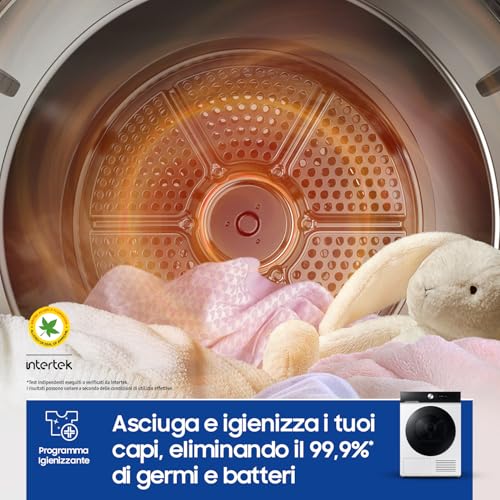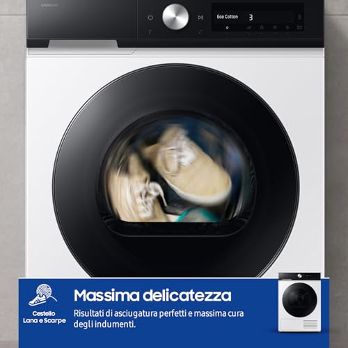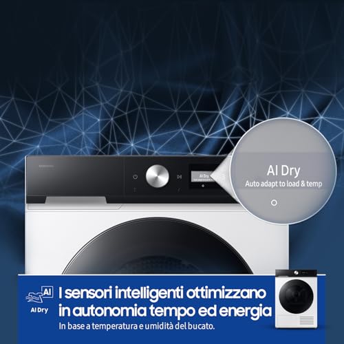 Ma veniamo al cuore pulsante di questo elettrodomestico: l'intelligenza artificiale. Il sistema AI Control è pensato per semplificare la vita. L'asciugatrice impara dalle tue abitudini, suggerendoti i cicli che usi più di frequente e personalizzando l'esperienza di asciugatura. Grazie all'app SmartThings, puoi controllarla da remoto, ricevere notifiche e consigli, e persino farla comunicare con la lavatrice Samsung (se compatibile) per impostare automaticamente il ciclo di asciugatura ideale in base al lavaggio appena concluso.