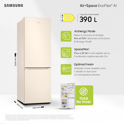 Samsung ha implementato qui la sua rinomata tecnologia SpaceMax™. Di cosa si tratta? In parole semplici, le pareti del frigorifero sono molto più sottili rispetto ai modelli tradizionali, grazie a un materiale isolante ad alta efficienza. Questo si traduce in una capacità interna nettamente superiore, che in questo modello raggiunge i 344 litri totali (230 litri per il vano frigo e 114 per il freezer), senza aumentare l'ingombro esterno. Finalmente potrai fare la spesa settimanale senza giocare a tetris con gli alimenti!