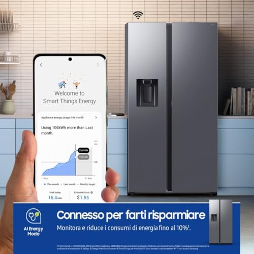 Samsung ha integrato in questo modello una serie di tecnologie pensate per ottimizzare la conservazione degli alimenti e ridurre i consumi energetici. La modalità AI Energy, gestibile tramite SmartThings, monitora le tue abitudini di utilizzo e ottimizza il funzionamento del compressore per ridurre i consumi fino al 10%. L'intelligenza artificiale apprende quando apri più spesso il frigo e adatta di conseguenza i cicli di sbrinamento, evitando sprechi energetici.
