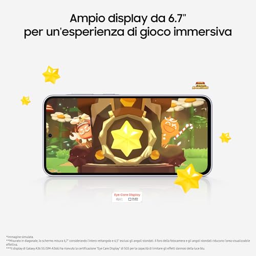 Il comparto fotografico è un altro aspetto su cui Samsung punta molto. Il Galaxy A36 5G è equipaggiato con un sensore principale da 50 MP con apertura f/1.8 e stabilizzazione ottica dell'immagine (OIS). A fargli compagnia troviamo un sensore ultra-grandangolare da 8 MP e una lente macro da 5 MP. La fotocamera frontale per i selfie è da 12 MP.