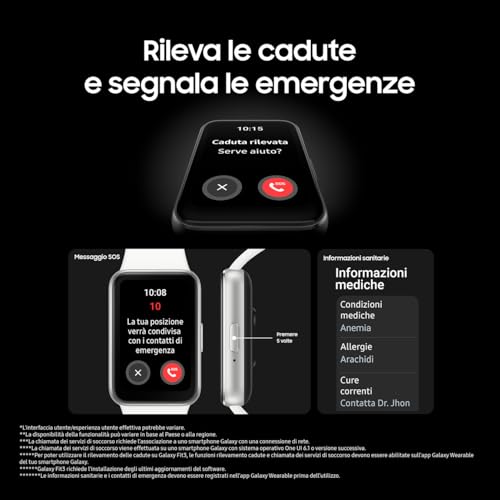 - Set completo di funzioni per salute e sicurezza (rilevamento cadute/SOS)