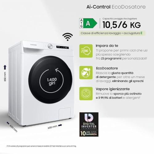 La Samsung Lavasciuga Ai Control è un elettrodomestico indubbiamente avanzato e performante. L'intelligenza artificiale non è solo una parola di marketing, ma si traduce in funzioni concrete che semplificano la gestione del bucato e ottimizzano i risultati. Le tecnologie Ecolavaggio®, AI Wash e l'asciugatura a pompa di calore garantiscono lavaggi efficaci, consumi ridotti e grande cura per i tessuti. È la scelta ideale per chi ama la tecnologia, vuole un prodotto efficiente e desidera personalizzare al massimo la propria esperienza di lavaggio. Se invece cerchi un apparecchio semplice e senza fronzoli, potresti trovare le sue tante funzioni quasi eccessive. Nel complesso, però, rappresenta un eccellente investimento per chi vuole il meglio della tecnologia attuale applicata al mondo del bucato.