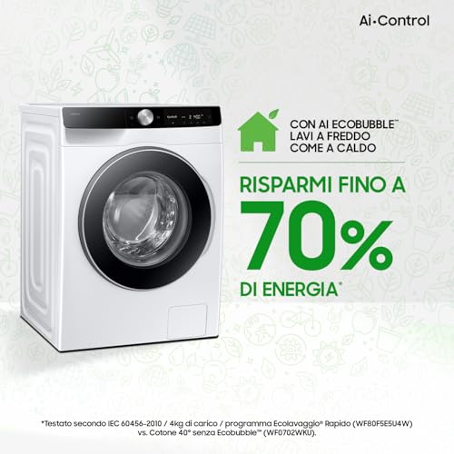 Una delle tecnologie più interessanti è senza dubbio AI Ecobubble™. In parole semplici, questa funzione trasforma il detersivo in bolle prima che entri nel cestello. Queste bolle penetrano nei tessuti più velocemente e più in profondità, permettendo di ottenere un bucato pulito anche a basse temperature. Questo si traduce in un doppio vantaggio: i capi delicati sono più protetti e si ha un notevole risparmio energetico, fino al 70% secondo Samsung.