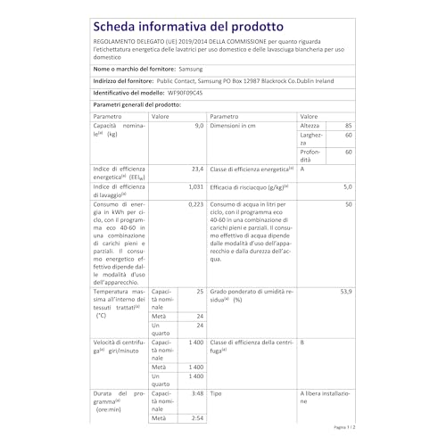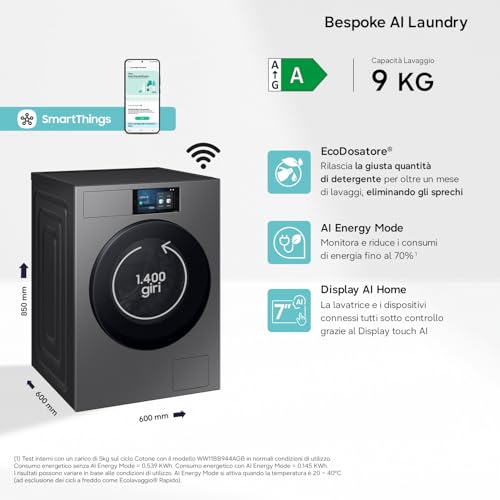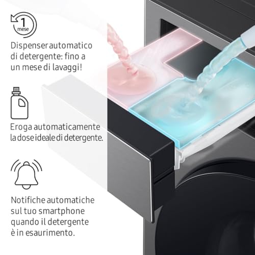 La Samsung Lavatrice BESPOKE AI Laundry WF90F09C4S/U3 è un elettrodomestico di fascia alta che giustifica il suo posizionamento con un pacchetto di funzionalità davvero impressionante. È la scelta ideale per chi cerca il massimo della tecnologia, un'efficienza energetica senza compromessi e un design che arreda. L'intelligenza artificiale non è solo una parola di marketing, ma si traduce in funzioni concrete come l'Ecodosatore e l'AI Ecobubble™, che semplificano la vita e migliorano i risultati. Sebbene possa sembrare un investimento importante, le sue performance, la comodità d'uso e il risparmio a lungo termine la rendono una scelta eccellente e proiettata verso il futuro della cura del bucato.