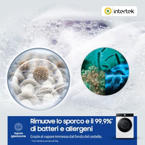 Oltre all'intelligenza, questa lavatrice Samsung offre performance di alto livello. La tecnologia AI Ecobubble™ non solo risparmia energia, ma migliora anche la rimozione dello sporco del 24% e protegge i tessuti il 45,5% in più. Per le macchie più ostinate, c'è la funzione Smacchiatutto Plus, che immerge i capi in una schiuma attiva per sciogliere lo sporco più difficile.