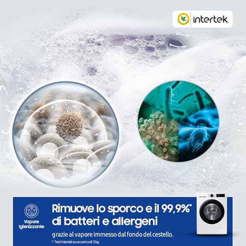 Un'altra caratteristica fondamentale, soprattutto per chi ha bambini piccoli o soffre di allergie, è il ciclo di Vapore igienizzante. A differenza di molte altre lavatrici, qui il vapore viene emesso dal fondo del cestello, garantendo una distribuzione omogenea su tutto il carico. Questo potente getto di vapore è in grado di rimuovere lo sporco più ostinato, ma soprattutto di eliminare fino al 99,9% di batteri e allergeni come acari della polvere, peli di cane e gatto e pollini. Un vero toccasana per la tranquillità di tutta la famiglia.