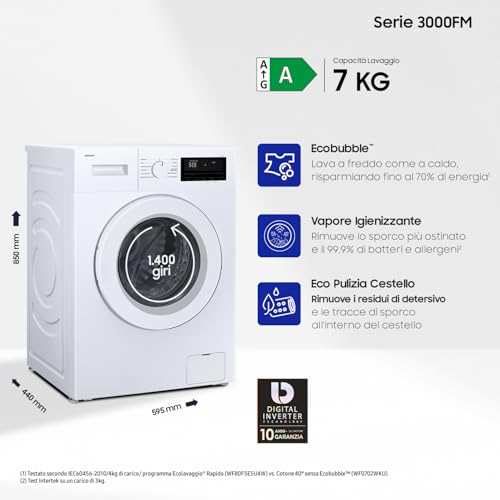 Un'altra tecnologia degna di nota, presente su molti modelli Samsung, è l'Ecolavaggio®. Questo sistema trasforma il detergente in bolle attive che penetrano nei tessuti più velocemente, garantendo una pulizia efficace anche a basse temperature. Il risultato? Un bucato impeccabile, un notevole risparmio energetico e un maggiore rispetto per i colori e i tessuti più delicati.