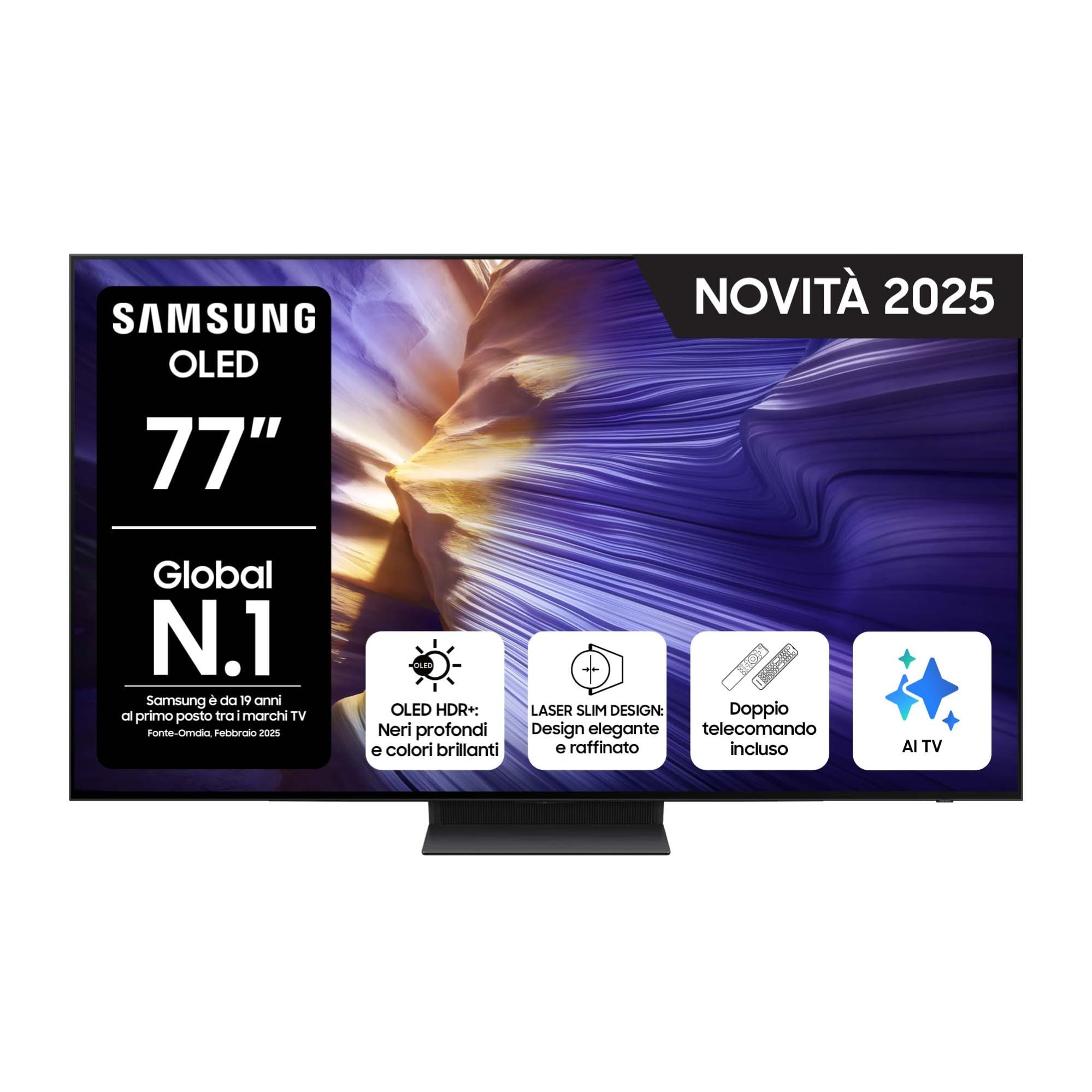 Appena tolto dalla scatola, il Samsung OLED S94F colpisce per il suo design LaserSlim. È incredibilmente sottile, quasi come un foglio di metallo, e le cornici sono talmente ridotte da essere quasi invisibili. Questo approccio minimalista non è solo una questione estetica: permette un'immersione totale nei contenuti, facendo sì che l'immagine sia l'unica vera protagonista. La qualità costruttiva è eccellente, con materiali che trasmettono una sensazione di solidità e pregio. Che sia appoggiato sul suo stand centrale o montato a parete, questo TV è un vero e proprio oggetto di design capace di valorizzare qualsiasi ambiente.