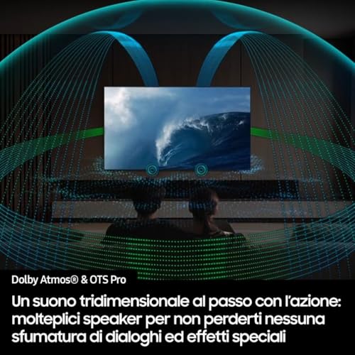 Un'immagine spettacolare merita un audio all'altezza. Il Samsung S94F è equipaggiato con Dolby Atmos e la tecnologia Object Tracking Sound Lite (OTS Lite). L'OTS Lite utilizza gli altoparlanti del TV per creare un suono tridimensionale che sembra provenire esattamente dal punto in cui si svolge l'azione sullo schermo, aumentando il coinvolgimento. Il supporto al Dolby Atmos, poi, espande ulteriormente il palcoscenico sonoro, creando un'esperienza avvolgente che ti farà sentire al centro della scena. Sebbene per una vera esperienza cinematografica sia sempre consigliabile una soundbar, il sistema audio integrato è sorprendentemente potente e chiaro. È importante notare che, come da tradizione Samsung, manca il supporto ai formati audio DTS.