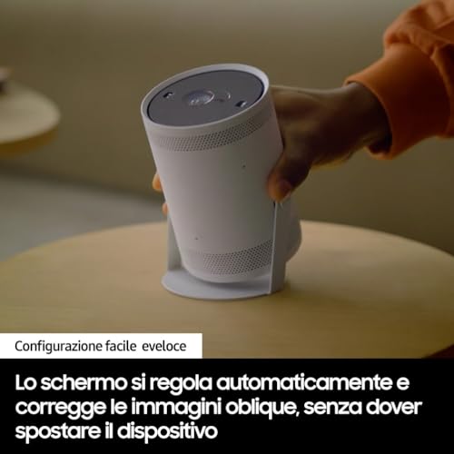 Non mancano le funzioni smart, come il supporto agli assistenti vocali (Bixby e Alexa) e la modalità Ambient, che consente di proiettare immagini decorative, finestre virtuali o messaggi personalizzati quando non si sta guardando un film, trasformando il proiettore in un oggetto d'arredo dinamico.