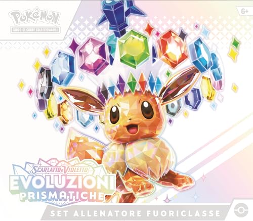 Il Set Allenatore Fuoriclasse (o Elite Trainer Box, per gli amici ETB) è da sempre uno dei prodotti di punta per ogni nuova espansione del Gioco di Carte Collezionabili Pokémon. È quel pacchetto "tutto incluso" che fa gola sia a chi ha appena iniziato, sia ai veterani che cercano un modo rapido per immergersi in un nuovo set. Con Scarlatto e Violetto: Evoluzioni Prismatiche, l'attesa era particolarmente alta. Il motivo? Un'intera espansione dedicata a uno dei Pokémon più amati di sempre: Eevee e la sua incredibile famiglia di evoluzioni. Questo set promette di portare le "Eeveelutions" a un nuovo livello con la meccanica dei Pokémon-ex Teracristal Astrale, carte rare con illustrazioni speciali e persino nuove varianti di carte olografiche. Ma andiamo con ordine e apriamo insieme questa scatola delle meraviglie.