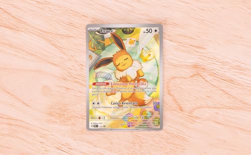 Uno dei pezzi forti di questo cofanetto è senza dubbio la carta promozionale full art di Eevee. Non è una semplice carta rara, ma un'illustrazione a figura intera che la rende un vero e proprio oggetto da collezione. L'artwork è curato e cattura perfettamente la natura adorabile e versatile del Pokémon Evoluzione. Per molti, questa carta è il motivo principale dell'acquisto, garantendo un pezzo da novanta per la propria collezione a prescindere dalla fortuna con le bustine. È giocabile? Certo, ma il suo vero valore è estetico e collezionistico. Un must-have per tutti i fan di Eevee.