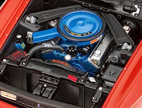 Passiamo ora alla muscle car rossa fiammante che sfreccia per le strade di Las Vegas in "Una cascata di diamanti". Questo kit in scala 1:25 è frutto di uno stampo completamente nuovo e si vede. Composto da ben 129 pezzi, offre un livello di dettaglio decisamente superiore. Qui troviamo un motore V8 Big-block 429 Cobra Jet completamente riprodotto e un vano motore ricco di componenti separati che faranno la gioia dei modellisti più esigenti.