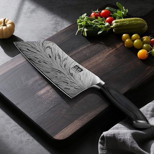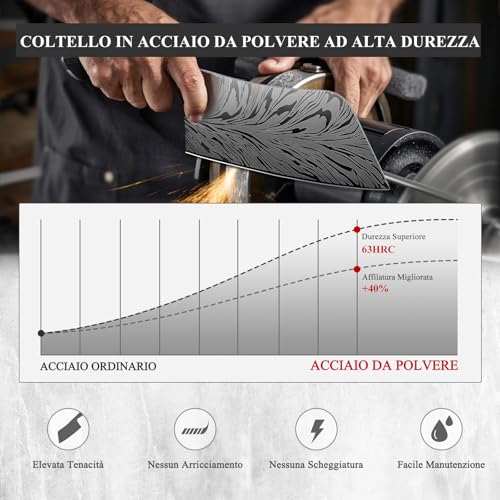 Il manico è realizzato in Pakkawood, un materiale composito noto per la sua resistenza e durabilità, che offre una presa solida e antiscivolo. L'impugnatura è ergonomica e il bilanciamento tra lama e manico è studiato per facilitare la manovrabilità durante il taglio. Durante le nostre prove, abbiamo apprezzato la comodità della presa, che non affatica la mano nemmeno dopo sessioni di utilizzo prolungato. Tuttavia, alcuni utenti hanno notato che i coltelli SHAN ZU possono risultare un po' pesanti, un fattore da considerare in base alle proprie preferenze personali.