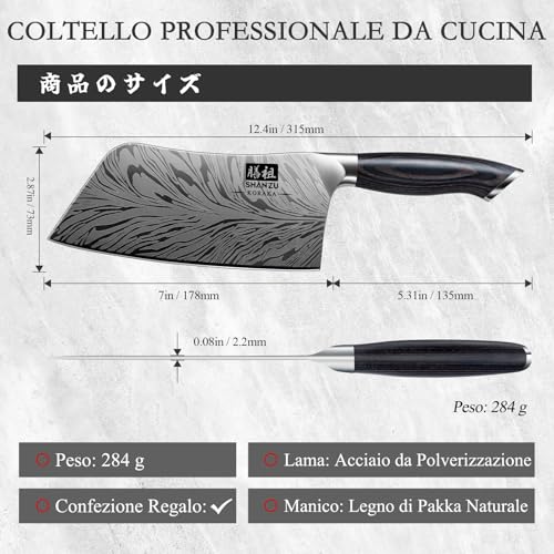 Come si comporta il KORAKA bianti nella cucina di tutti i giorni? È un coltello versatile, adatto a tritare, affettare e sminuzzare un'ampia varietà di ingredienti. Tuttavia, è fondamentale ricordare che, come per la maggior parte dei coltelli di qualità, non è progettato per tagliare ossa, cibi congelati o per essere usato con un movimento di "mannaia" dall'alto verso il basso. Un utilizzo improprio potrebbe danneggiare il filo.