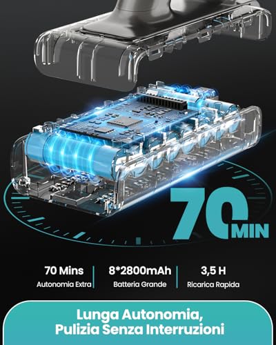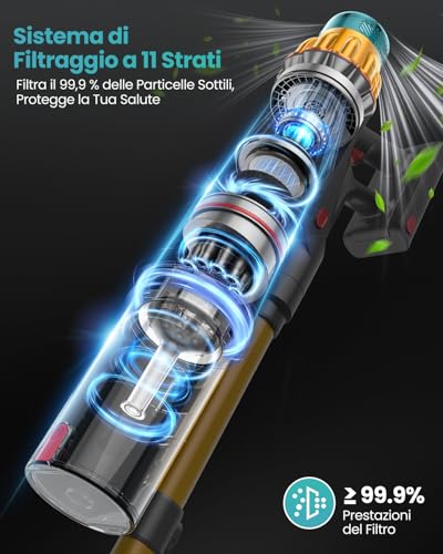 Un altro punto di forza è il sistema di filtraggio HEPA a 11 stadi, che promette di catturare il 99,99% delle particelle di polvere fino a 0,1 micron. Questo non solo garantisce una pulizia profonda delle superfici, ma contribuisce anche a migliorare la qualità dell'aria in casa, un aspetto fondamentale per chi soffre di allergie. Il contenitore della polvere, con una capienza generosa di 2 litri, si svuota facilmente con un solo tocco, evitando il contatto diretto con lo sporco.