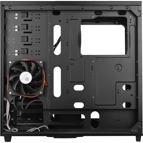 Il sistema di raffreddamento del SilverStone TJ04-E si basa su un concetto di pressione positiva, progettato per ridurre l'accumulo di polvere all'interno del case. Invece di una ventola frontale, l'immissione di aria fresca è affidata a una o due ventole da 120mm (una inclusa) posizionate sul lato destro, che soffiano aria direttamente sui cestelli degli hard disk. Questa scelta, apparentemente insolita, permette di raffreddare efficacemente le unità di storage e di far arrivare aria fresca direttamente alla zona della scheda video.