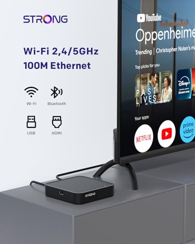 Lo STRONG Leap-S3 è un dispositivo certificato da Google, il che garantisce pieno accesso al Google Play Store e a migliaia di app. Una delle funzioni più comode è senza dubbio il Chromecast integrato, che permette di trasmettere contenuti da smartphone, tablet o PC direttamente sulla TV con una facilità disarmante.