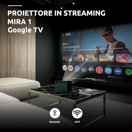 Il vero punto di forza dello Strong MIRA1 è l'integrazione del sistema operativo Google TV certificato. Questo trasforma il proiettore in un dispositivo smart completo e autonomo. Non avrai bisogno di collegare chiavette o box esterni: una volta connesso al Wi-Fi, avrai accesso diretto a un mondo di contenuti. Le app più popolari come Netflix, YouTube, Prime Video e Disney+ sono preinstallate e pronte all'uso.