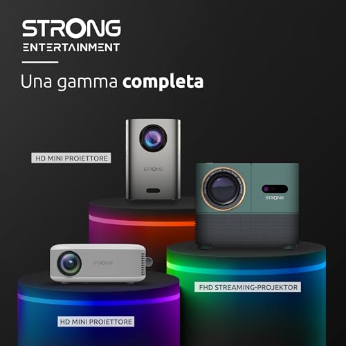 Lo Strong MIRA1 può proiettare uno schermo di dimensioni variabili, da 40 fino a ben 150 pollici, permettendo di adattarsi a qualsiasi parete e spazio disponibile. Questa flessibilità lo rende ideale sia per piccole stanze che per veri e propri allestimenti home cinema.