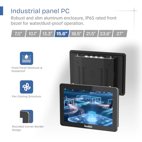 Appena estratto dalla confezione, il SunKol 15,6" Embedded Industrial Touch Panel PC comunica immediatamente una sensazione di solidità. Il telaio, realizzato con materiali di alta qualità, è progettato per resistere agli ambienti industriali più difficili. La parte posteriore in alluminio non solo conferisce un aspetto professionale, ma funge anche da dissipatore di calore, un dettaglio cruciale per un dispositivo fanless (senza ventole) come questo. Questo design garantisce un funzionamento silenzioso e protegge i componenti interni da polvere e detriti, nemici giurati dell'elettronica in contesti produttivi. Il pannello frontale, con certificazione IP65, assicura protezione contro polvere e getti d'acqua, rendendolo adatto all'installazione in quadri elettrici o a bordo macchina senza preoccupazioni.