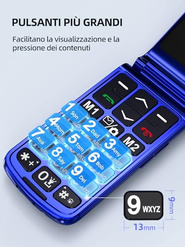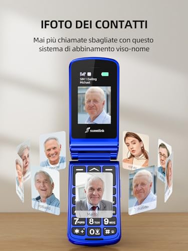 Un'altra funzione pensata per semplificare la vita è quella dei contatti con immagini o "avatar". È possibile associare una foto a 8 contatti preferiti, così da poterli chiamare rapidamente riconoscendoli visivamente, senza dover leggere il nome. Questa opzione, unita ai tasti di chiamata rapida (M1, M2 e i numeri dal 2 al 9), rende il processo di chiamata veloce e a prova di errore.