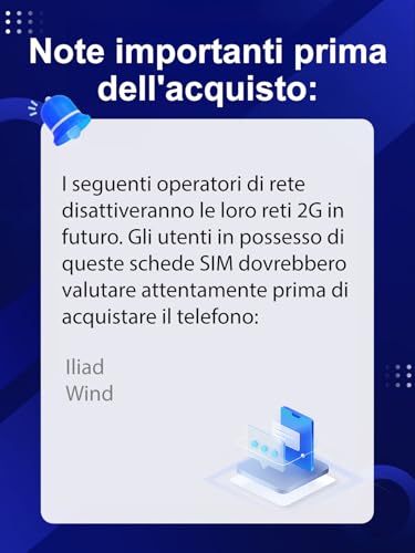 - Compatibilità limitata alla rete 2G (verificare copertura operatore)