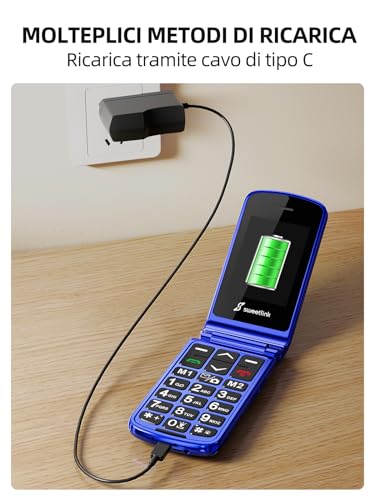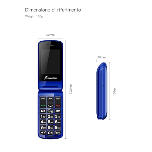 Appena preso in mano, il SweetLink GSM Telefono Cellulare per Anziani comunica subito il suo scopo: essere immediato e facile da usare. Il design a conchiglia (o "flip phone") è una scelta vincente, non solo per un fattore nostalgia, ma soprattutto per la sua praticità. Aprire lo sportellino per rispondere e chiuderlo per terminare la chiamata è un gesto intuitivo che elimina il rischio di tocchi involontari sullo schermo. Le dimensioni sono compatte e il telefono è estremamente leggero, perfetto per essere tenuto in tasca o in una borsa senza ingombrare.
