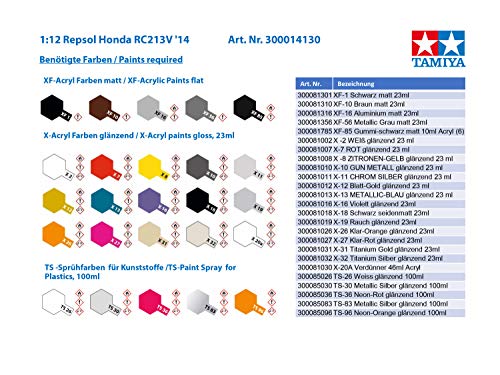 Il kit Tamiya 14130 permette di riprodurre in scala 1:12 la Honda RC213V che ha dominato la stagione 2014 della MotoGP, guidata dal fenomenale Marc Márquez. Quell'anno, il giovane pilota spagnolo vinse ben 13 gare, di cui 10 consecutive, assicurando alla Repsol Honda il titolo costruttori, team e piloti. Questo modello, quindi, non è solo un pezzo da collezione, ma una celebrazione di un'annata storica per il motociclismo.