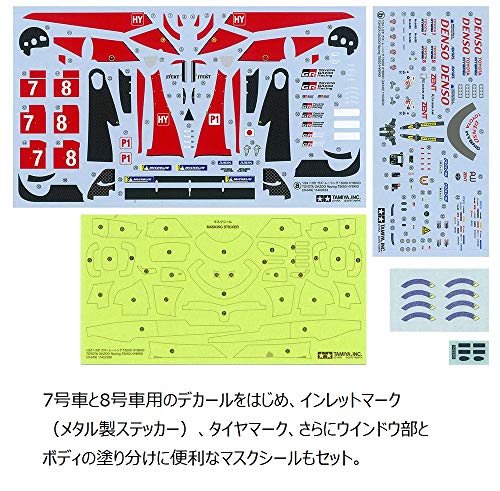 - Un foglio di decal ad acqua di alta qualità per riprodurre le livree delle auto numero 7 e 8, inclusi gli sponsor e gli inserti in fibra di carbonio.