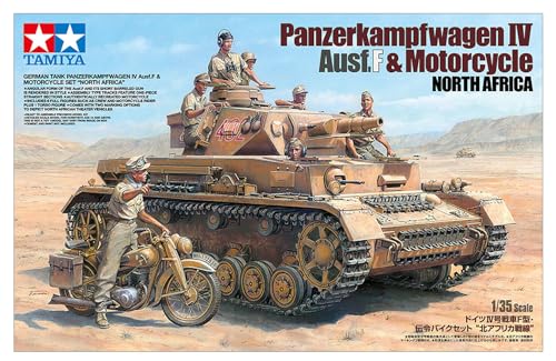 Ciao a tutti, appassionati di modellismo e di storia! Oggi mettiamo le mani su un kit che farà la gioia di molti: il TAMIYA 25208 in scala 1:35, dedicato al celebre carro armato tedesco Panzerkampfwagen IV, versione Ausf.F, in servizio con il Deutsches Afrikakorps (DAK). Questo modello non arriva da solo, ma è accompagnato da una motocicletta e un set di figure che permettono di creare un diorama dinamico e ricco di vita.