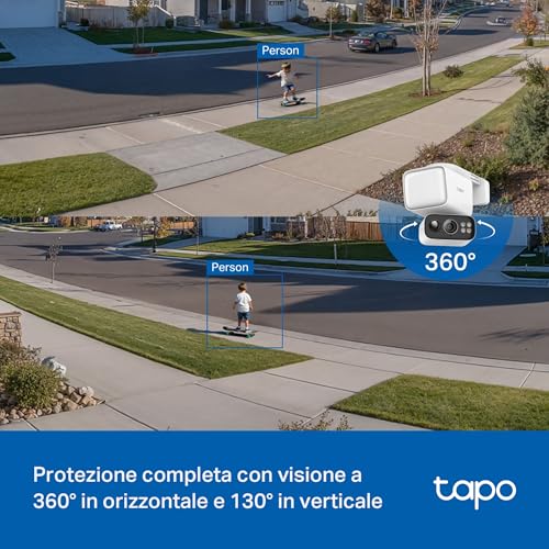 La capacità di muoversi è ciò che distingue una telecamera PTZ. La C520WS offre una rotazione orizzontale di 360° e verticale di 130°, eliminando di fatto qualsiasi angolo cieco. Tramite l'app Tapo, è possibile controllare i movimenti in tempo reale con una buona fluidità o impostare dei punti di "pattugliamento" che la telecamera controllerà in automatico.