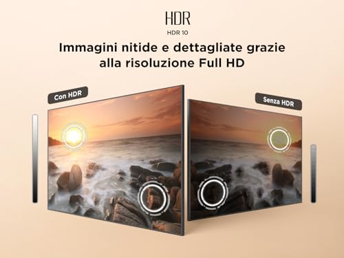 Un punto di forza notevole è il supporto completo ai principali formati HDR, inclusi HDR10, HLG, HDR10+ e Dolby Vision. Questa compatibilità totale assicura la migliore resa visiva possibile con qualsiasi sorgente, che si tratti di un film su Netflix, un videogioco di ultima generazione o un evento sportivo. I dettagli nelle scene scure e in quelle molto luminose sono ben definiti, esaltando la profondità dell'immagine. Il pannello è di tipo HVA, una variante della tecnologia VA che garantisce neri più profondi e un contrasto più elevato rispetto ai classici pannelli IPS, a fronte di un angolo di visione leggermente più ristretto. La luminosità si attesta su valori buoni per la fascia di prodotto, garantendo una visione piacevole anche in ambienti non completamente bui.
