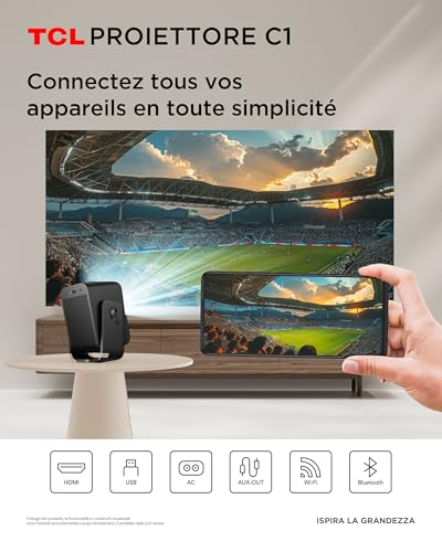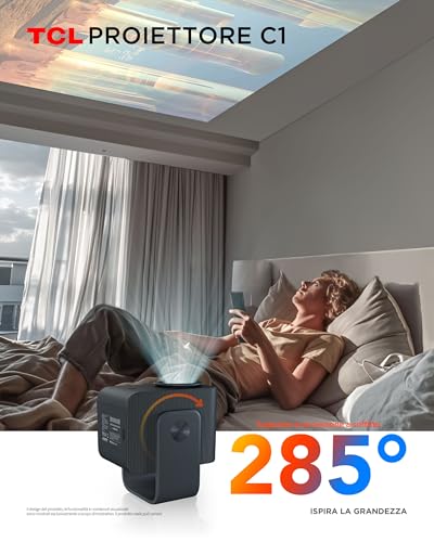 Appena aperta la confezione del TCL Videoproiettore portatile GTV, la prima cosa che salta all'occhio è il suo design compatto e curato. Non è il solito "scatolotto" anonimo, ma un oggetto che si fa notare per le sue linee moderne e per una costruzione che trasmette subito una sensazione di solidità. Il peso contenuto e le dimensioni ridotte lo rendono un compagno di viaggio ideale, perfetto per chi non vuole rinunciare a una serata cinema anche in vacanza o a casa di amici.