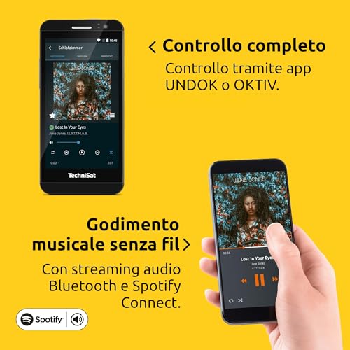 - Bluetooth: Lo streaming audio via Bluetooth permette di collegare in un attimo smartphone, tablet o PC e riprodurre la propria musica preferita, podcast o audiolibri direttamente sulla radio. L'accoppiamento è stabile e la qualità di trasmissione ottima.
