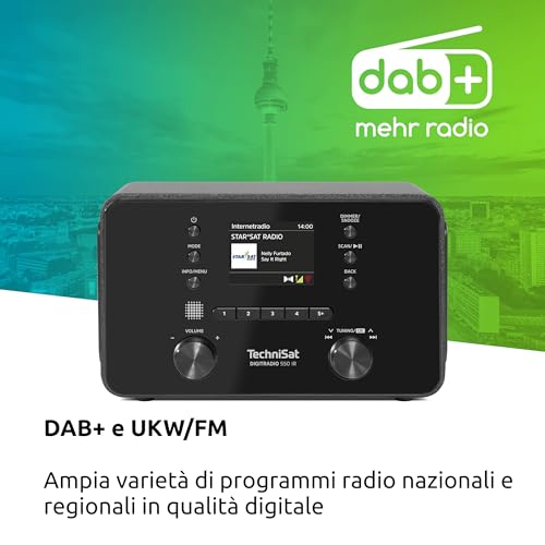 - Radio DAB+, FM e Internet: La ricezione, grazie anche all'antenna telescopica, è risultata stabile e di buona qualità sia per le stazioni digitali DAB+ che per quelle analogiche FM. Con la connessione Wi-Fi, si apre un mondo di migliaia di stazioni radio da tutto il globo e podcast.