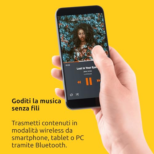 - Bluetooth 5.2: Lo streaming da smartphone, tablet o PC è semplice e immediato, permettendoti di ascoltare le tue playlist preferite da servizi come Spotify o Apple Music.