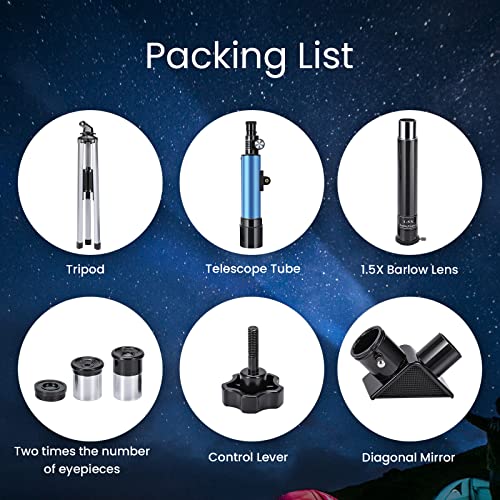Appena aperta la confezione del Telescopio Astronomico Uverbon 90X, ci si trova di fronte a un kit che, sulla carta, sembra completo per chi muove i primi passi nel mondo dell'astronomia. All'interno troviamo il tubo ottico principale, un treppiede in alluminio regolabile in altezza, un cercatore, due oculari (un H20mm per ingrandimenti minori e un H6mm per quelli più spinti) e una lente di Barlow 1.5x che promette di aumentare ulteriormente la potenza di ingrandimento.