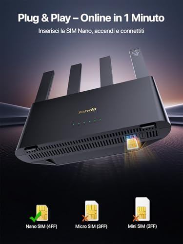 Una delle promesse più allettanti del Tenda 4G08 è la sua estrema semplicità di installazione, riassunta nel concetto "Plug & Play". E dobbiamo ammettere che, in larga parte, la promessa è mantenuta. Basta inserire una Nano SIM (di qualsiasi operatore) nell'apposito slot, collegare l'alimentatore e accendere il dispositivo. In pochi istanti, il router si connette alla rete mobile e crea una rete Wi-Fi pronta all'uso. Non è richiesta alcuna configurazione complessa, poiché il router è già pre-configurato per i principali operatori italiani.
