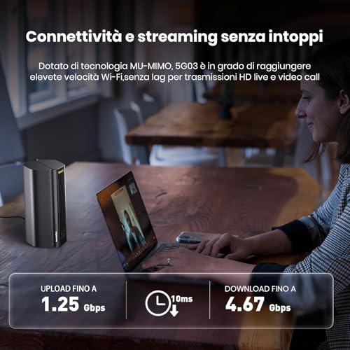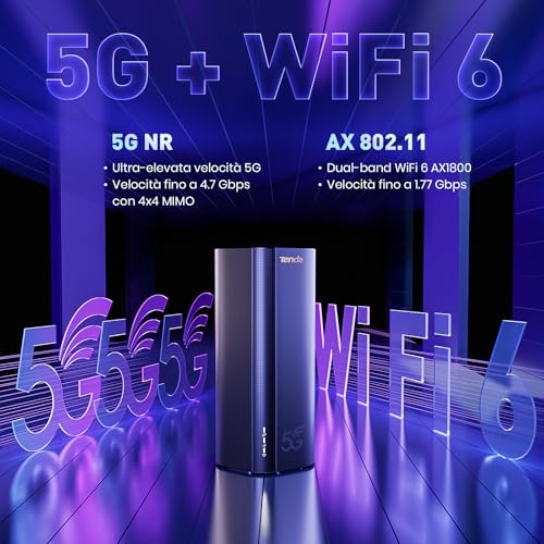La vera forza del Tenda 5G03 risiede nella sua doppia natura: è un router che combina la potenza della rete 5G con l'efficienza dello standard WiFi 6 (AX1800). Questo significa poter godere di una connessione ultra-veloce e stabile, liberandosi dai vincoli della linea fissa, specialmente in quelle aree dove la fibra ottica non arriva o le prestazioni dell'ADSL sono deludenti. Grazie al supporto 5G, le velocità teoriche in download possono raggiungere i 4,67 Gbps e 1,25 Gbps in upload, con una latenza che scende sotto i 10ms, un dato importantissimo per chi ama il gaming online.