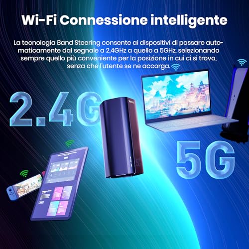 Per gli utenti più esigenti, il router offre funzionalità come la selezione delle bande e, tramite aggiornamenti firmware, la possibilità di aggregare le bande 4G per migliorare ulteriormente le prestazioni. È presente anche una tecnologia chiamata 5G Slicing, che ottimizza in modo intelligente la rete a seconda dell'attività svolta, che sia gaming, streaming o semplice navigazione.