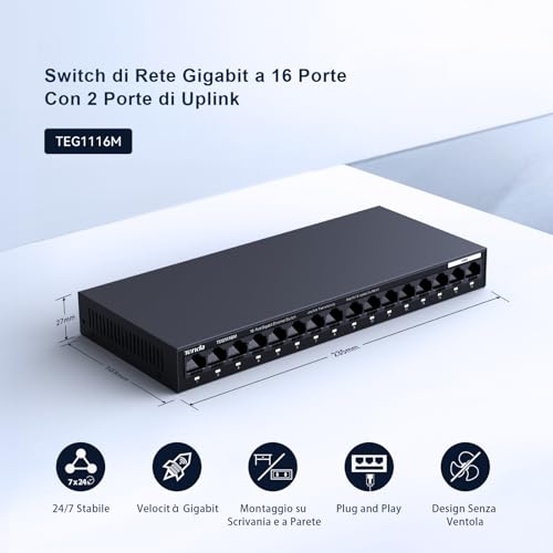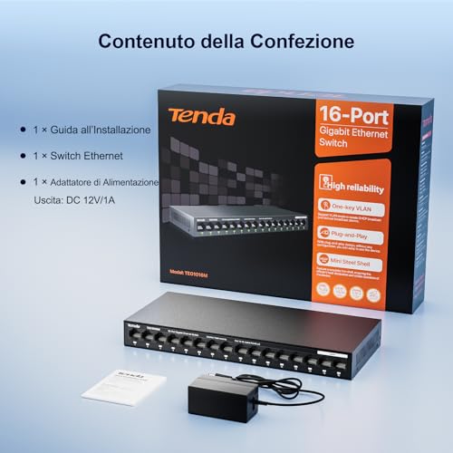 Immagina di avere un rubinetto (il tuo router) ma tanti dispositivi che hanno sete di connessione via cavo: la smart TV, la console per videogiochi, il computer fisso, un NAS... Le porte sul retro del router finiscono in fretta! Ecco che entra in gioco uno switch di rete come questo di Tenda. Pensa a lui come a una ciabatta elettrica, ma per le connessioni di rete: colleghi un cavo dal router allo switch e magicamente ottieni tante porte Ethernet aggiuntive per tutti i tuoi dispositivi. Semplice, no?