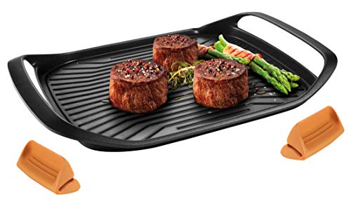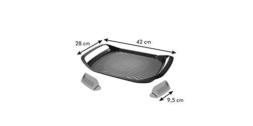 La Tescoma 605068 Bistecchiera SmartClick si presenta come una soluzione innovativa e versatile per gli amanti della cottura alla griglia casalinga. Con le sue generose dimensioni di 42 x 28 cm, offre un'ampia superficie di cottura, ideale per preparare porzioni abbondanti per tutta la famiglia. Ma la vera particolarità di questo modello, che salta subito all'occhio, è la sua concezione "ibrida".