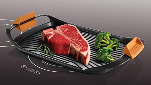 Una delle caratteristiche più interessanti è la presenza di due aree a temperatura differenziata. La zona centrale è pensata per una cottura più intensa e rapida, perfetta per sigillare la carne e ottenere la classica rigatura da grill. Le aree laterali, invece, mantengono una temperatura più bassa, ideale per terminare cotture più lente o per tenere in caldo le pietanze già pronte.